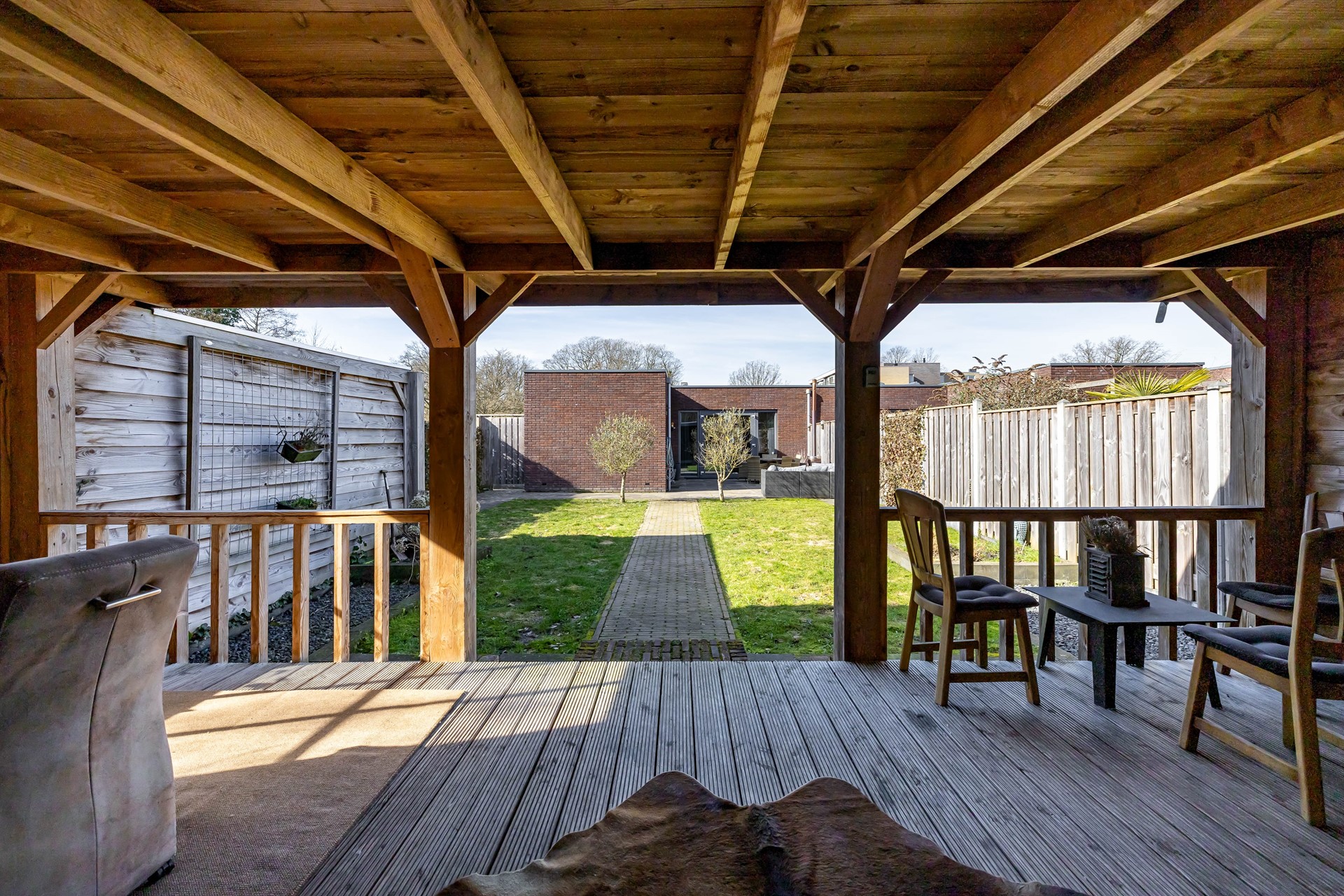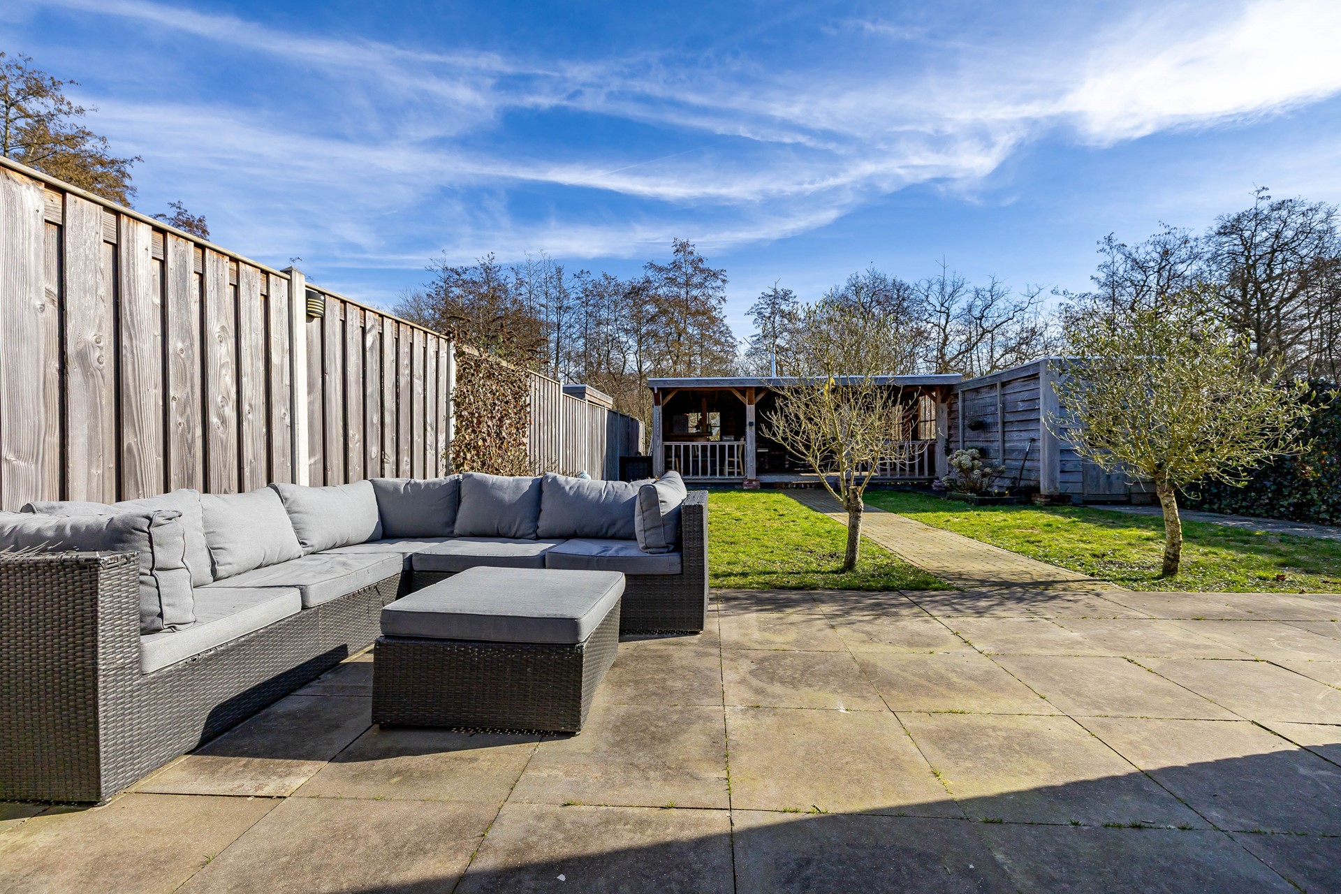 Ook buiten is het genieten. De diepe, zonnige tuin biedt volop privacy en ruimte. Naast een schuur en een royaal terras vind je hier een prachtige tuinkamer met bar, bakstenen haard en terrasverwarming. Een plek waar je het hele jaar door een vakantiegevoel ervaart. Of je nu een zomeravond doorbrengt met vrienden of op een winterdag geniet van de haard: dit is buitenleven op z’n best.