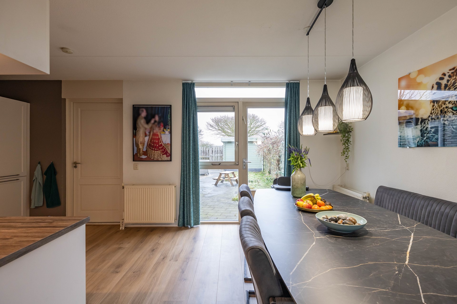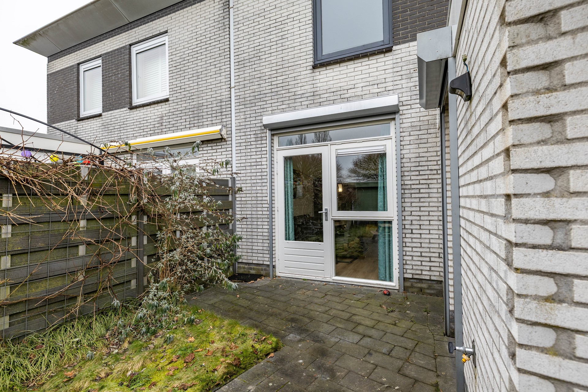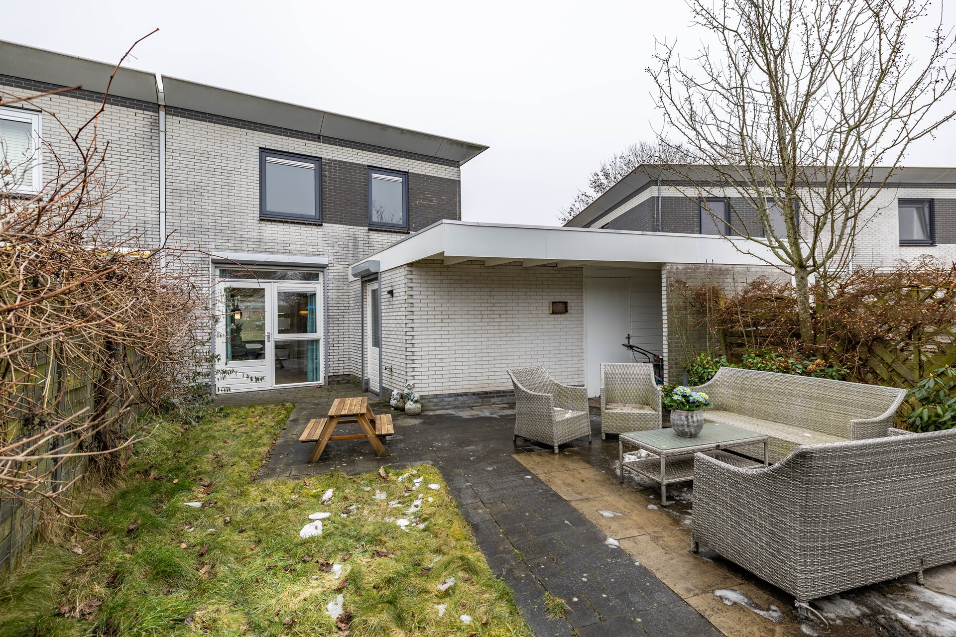 Ook buiten is het heerlijk vertoeven. De ruime achtertuin ligt op het westen en biedt veel privacy. Diverse heesters geven de tuin structuur en zorgen in het voorjaar en de zomer voor kleur en sfeer. Aan de voorzijde is een onderhoudsvriendelijke voortuin aangelegd en op de eigen oprit is plaats voor maar liefst twee auto’s. Direct achter de woning ligt een omsloten speeltuin, waar kinderen veilig en rustig kunnen spelen.