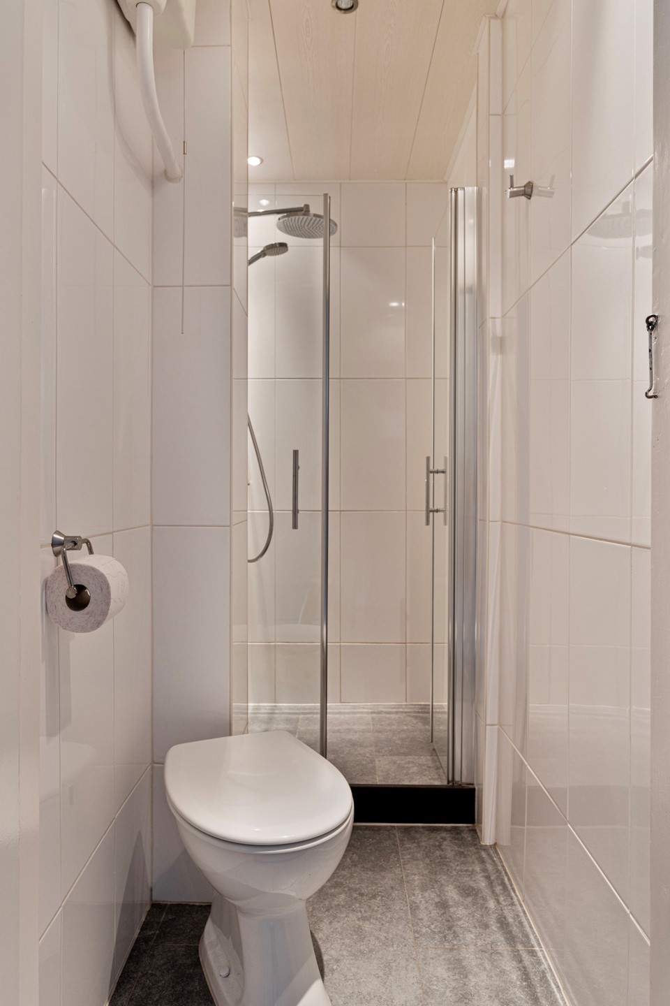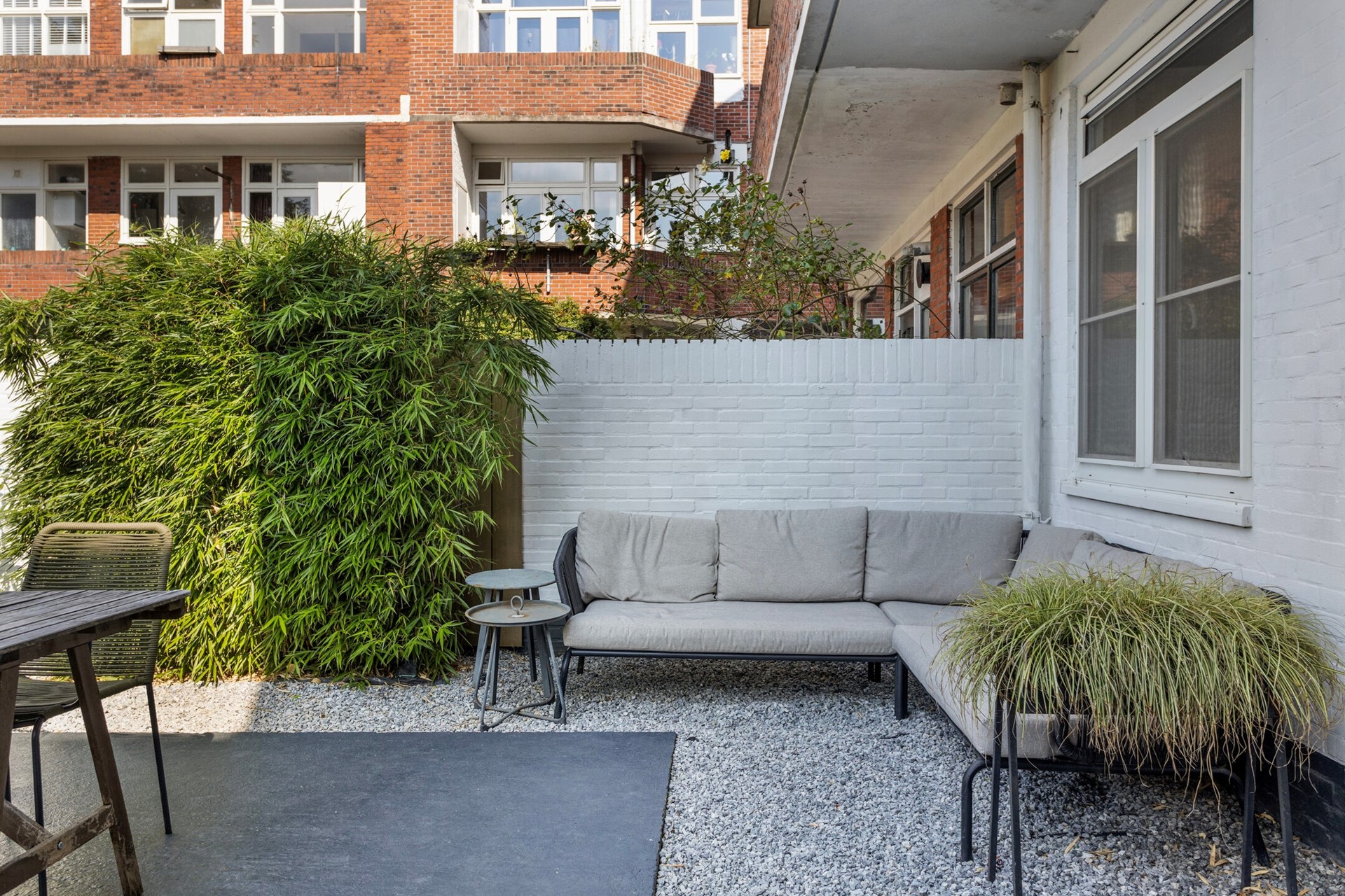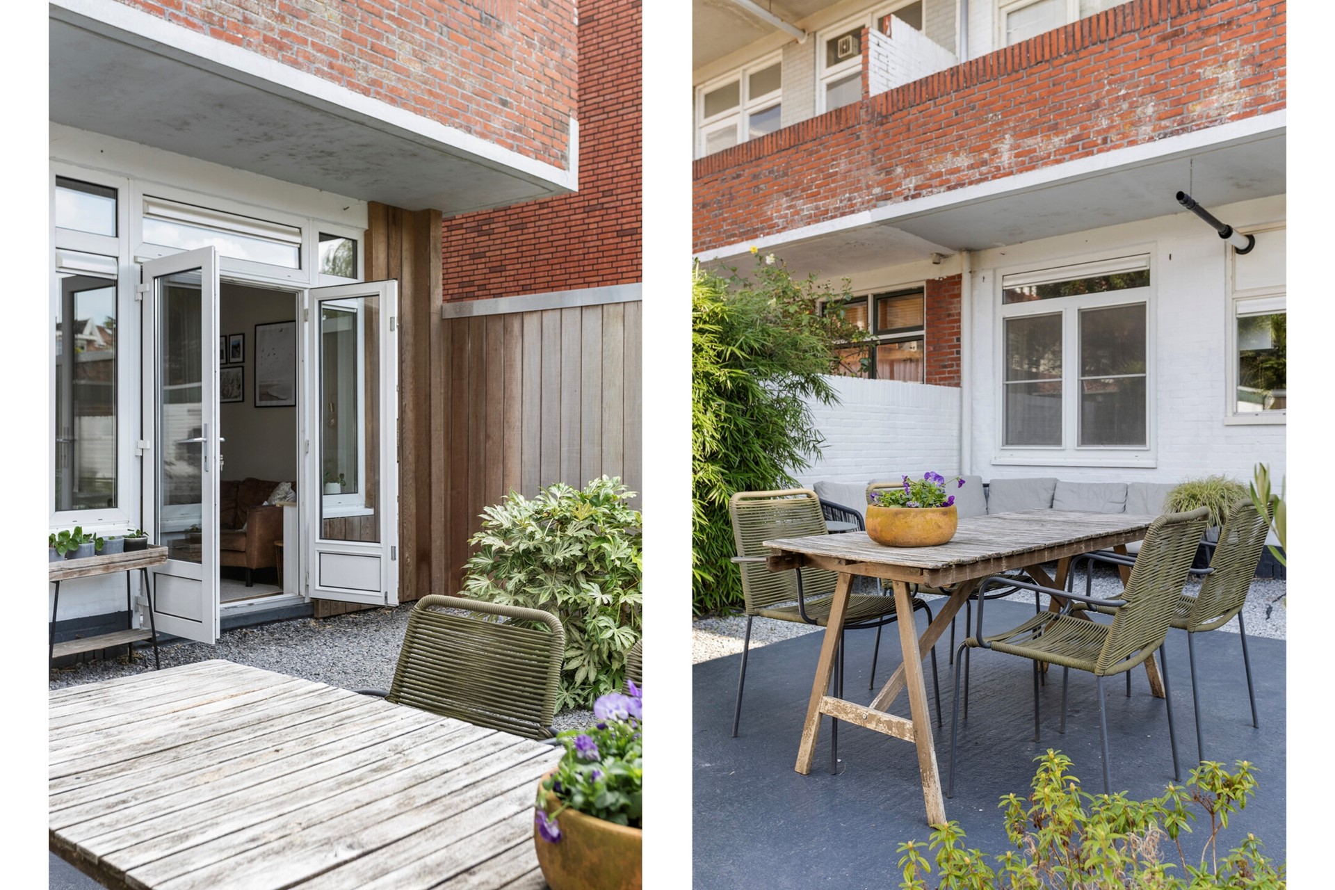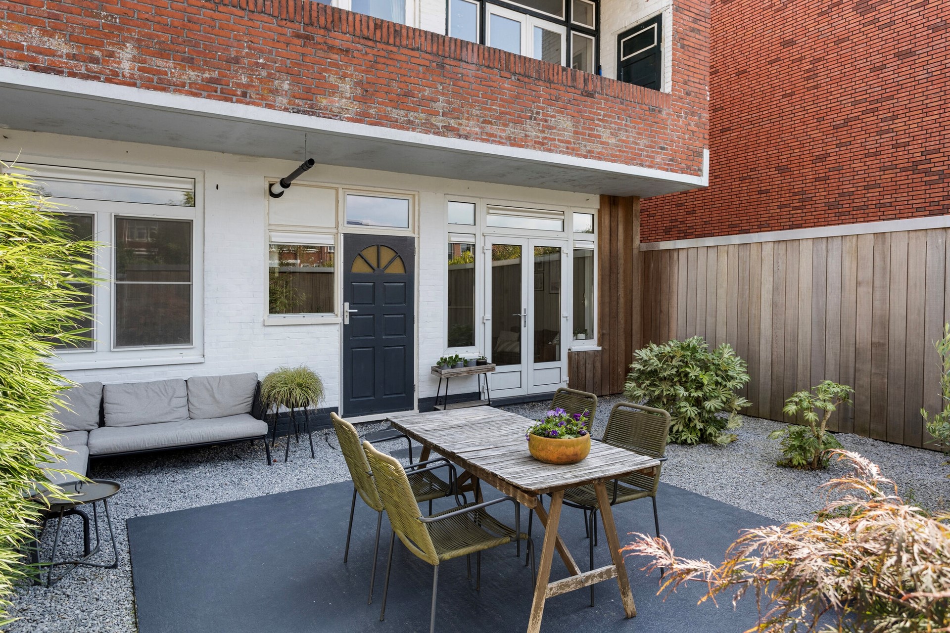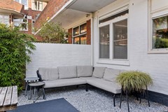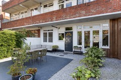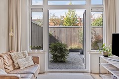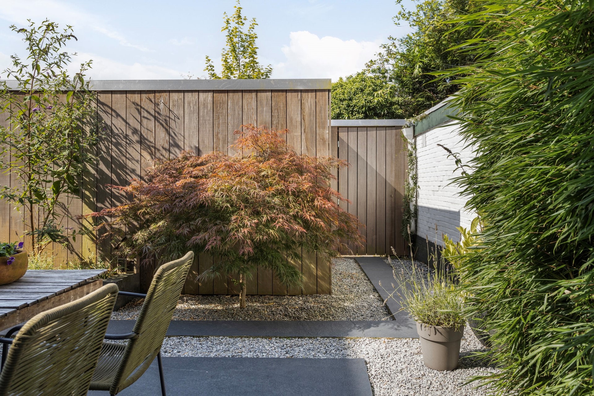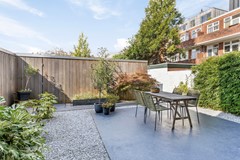 De eyecatcher van deze woning is misschien wel de zonnige achtertuin van ca. 60 m²: stijlvol en onderhoudsvriendelijk aangelegd, met grote tegels, grind en groene beplanting. Door de ligging geniet je hier volop van de middag- en avondzon. Achter in de tuin staat een praktische stenen berging — ideaal voor fietsen, tuingereedschap of extra opslagruimte.