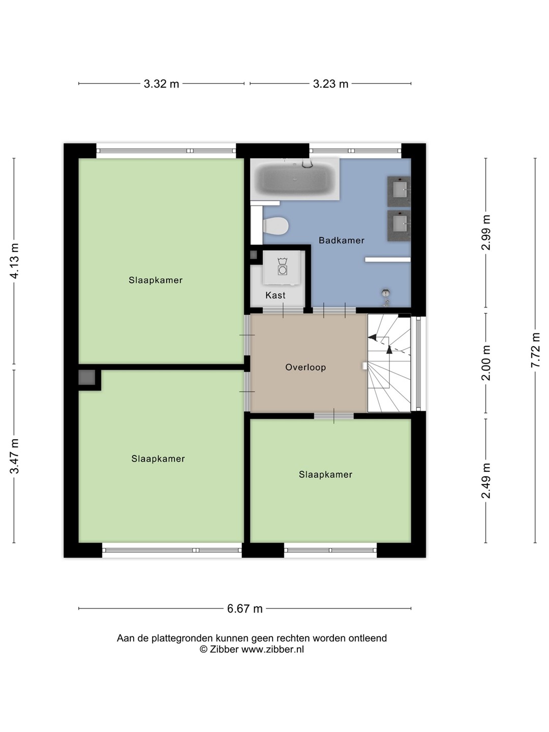 Eerste verdieping: Op de eerste verdieping bevindt zich een ruime en lichte overloop, welke is voorzien van een vaste kast met aansluiting voor het witgoed. Op deze verdieping bevinden zich maar liefst drie ruime slaapkamers en een riante badkamer. De badkamer is compleet uitgevoerd met een douche, ligbad en een tweede toilet.