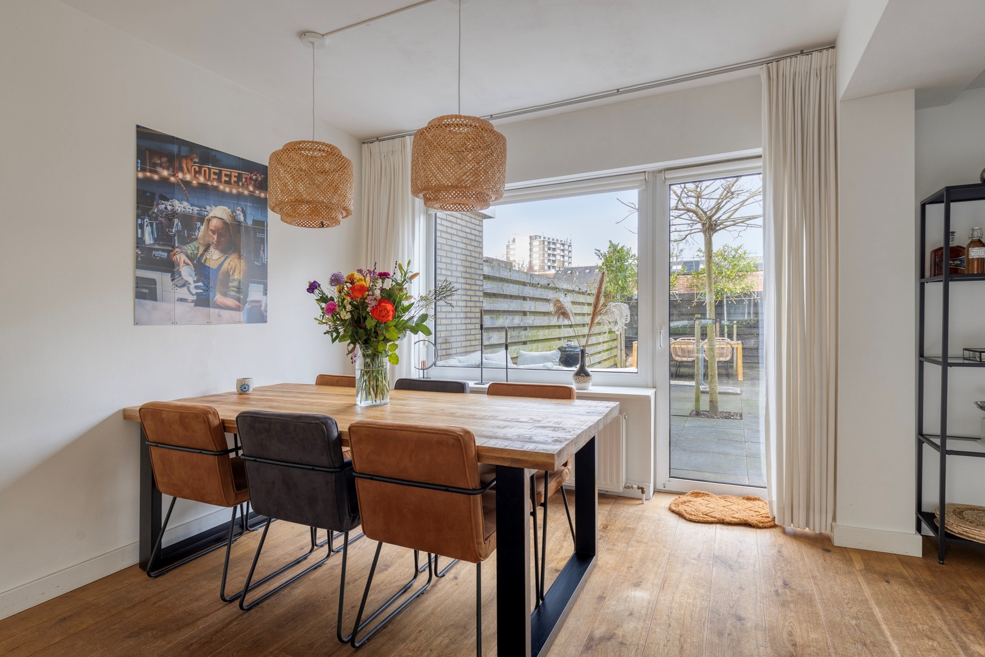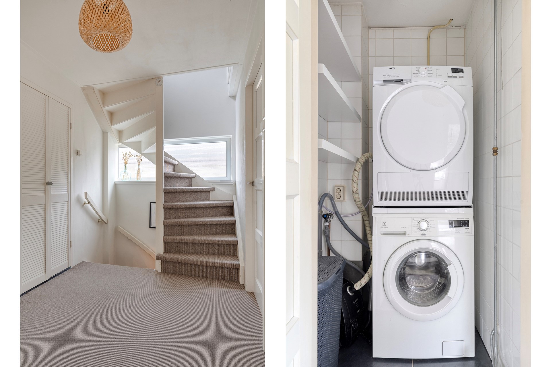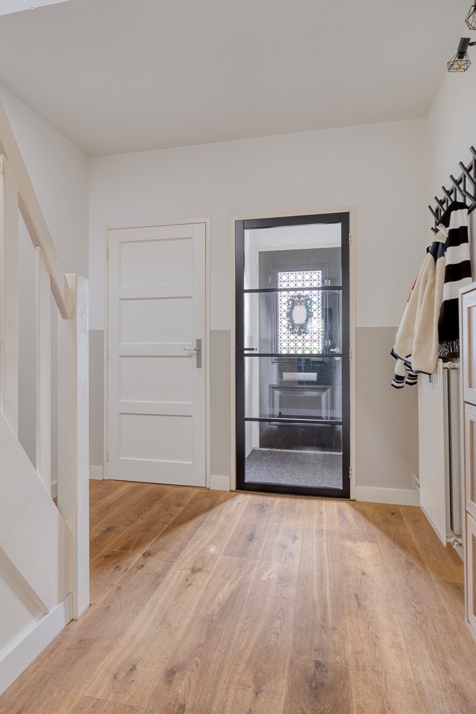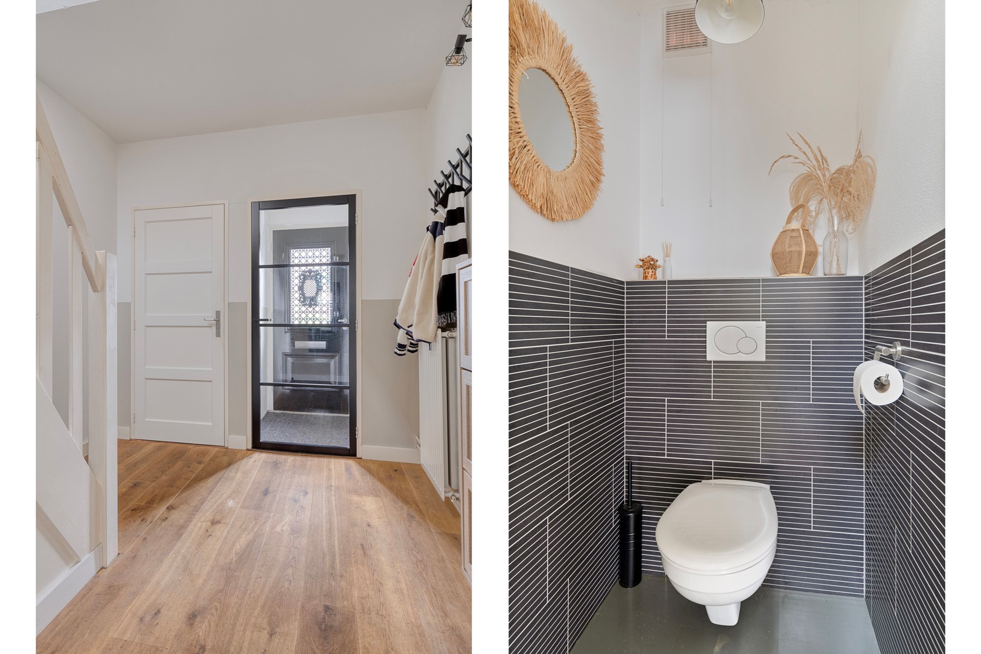 Begane grond: Via de entree met karakteristieke voordeur kom je in het tochtportaal met meterkast en toegang tot de ruime en lichte hal. Hier is een net toilet en de trap (met trapkast) naar de eerste verdieping. De gezellige, lichte én tuingerichte woonkamer is een van de fijnste plekjes in dit huis. De sfeervolle houten vloer en de prettige lichtinval geven de ruimte een warme uitstraling. De woonkamer staat in open verbinding met de keurige open keuken voorzien van diverse inbouwapparatuur zoals een 5- pits gaskookplaat, koelkast, oven, vaatwasser én is voorzien van ingebouwde lichtspots. De woonkamer en keuken zijn gezamenlijk maar liefst ca. 39 m² groot, perfect voor het hele gezin.