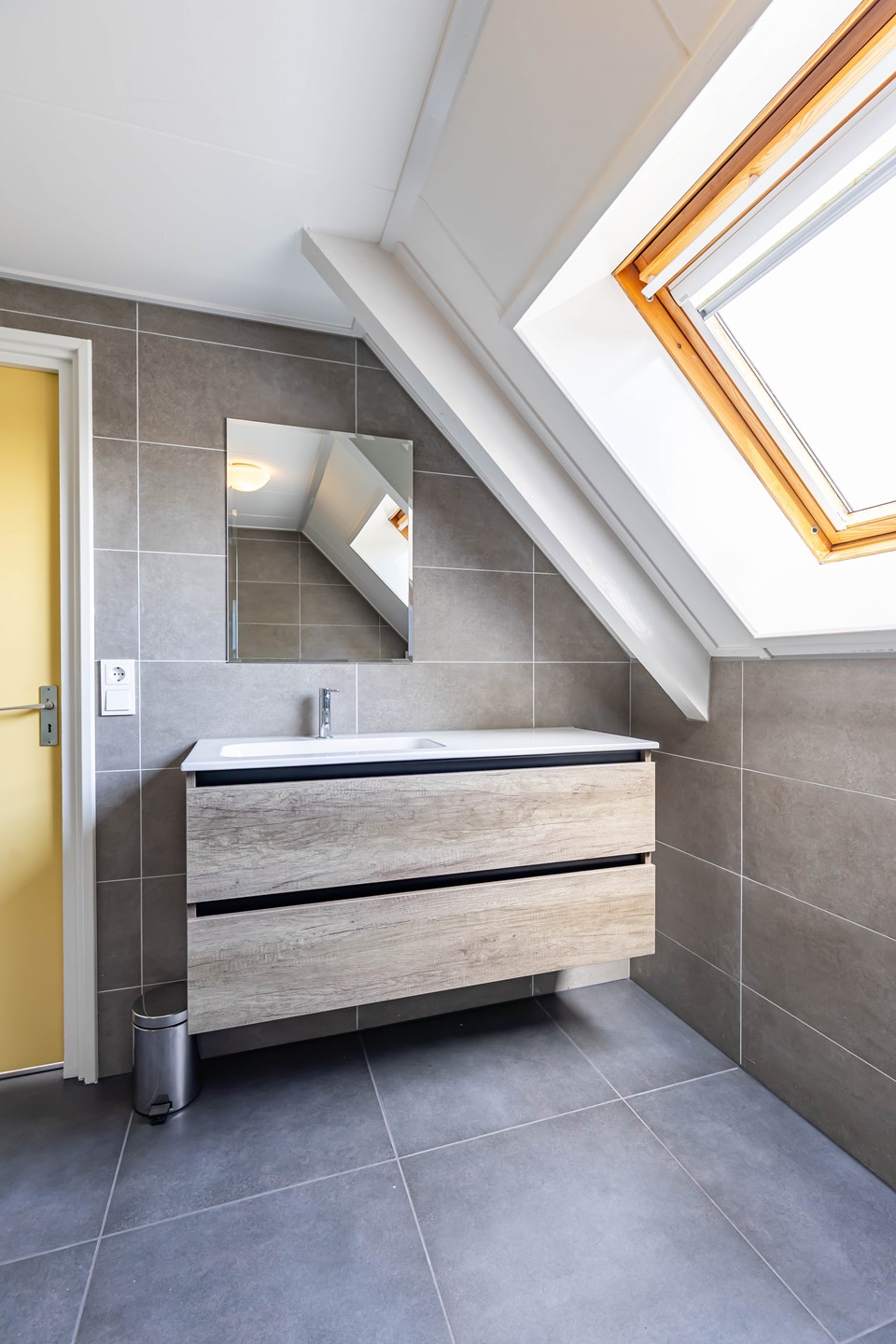 Tja, klussen is lang niet iedereen z’n hobby natuurlijk… Gelukkig kun je hier je spullen zó neerzetten. Alles is netjes bijgehouden door de huidige bewoners. De badkamer boven is lekker modern en van alle gemakken voorzien. Het huis heeft energielabel B, wat betekent dat je comfortabel woont met een goede isolatie – ook wel lekker met de energieprijzen van nu.