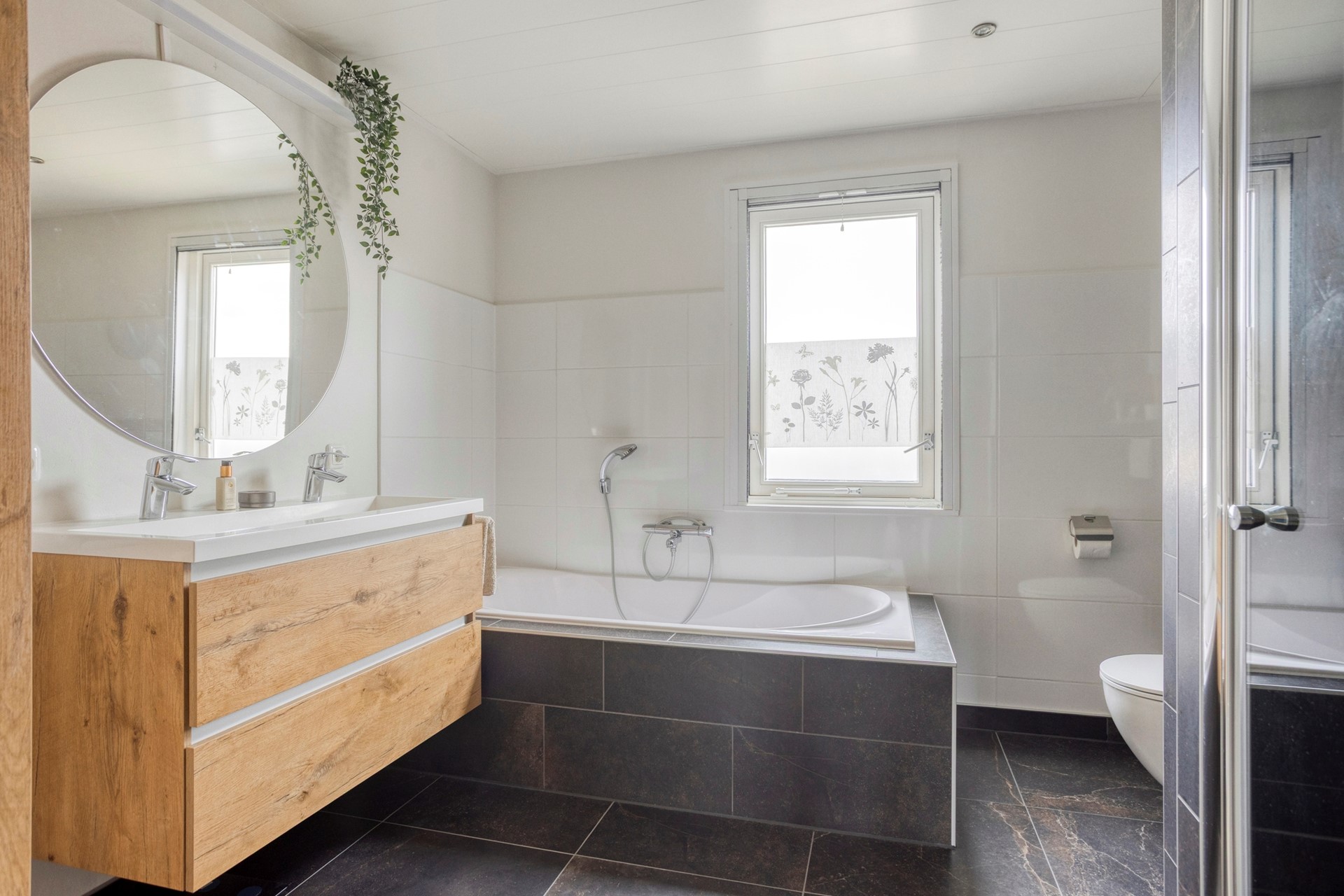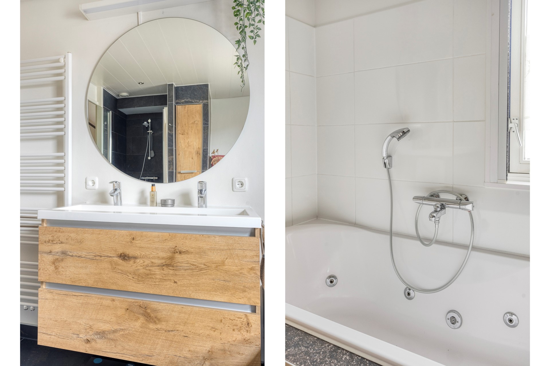 En wat te denken van de verrassend royale, uitgebouwde badkamer? Deze ruimte combineert luxe en gemak met een vleugje wellness: neem na een lange dag plaats in de whirlpool of fris jezelf ’s ochtends snel op in de douche. Ook is hier een modern toilet aanwezig. Alles keurig netjes afgewerkt en ontworpen voor optimaal gebruiksgemak.