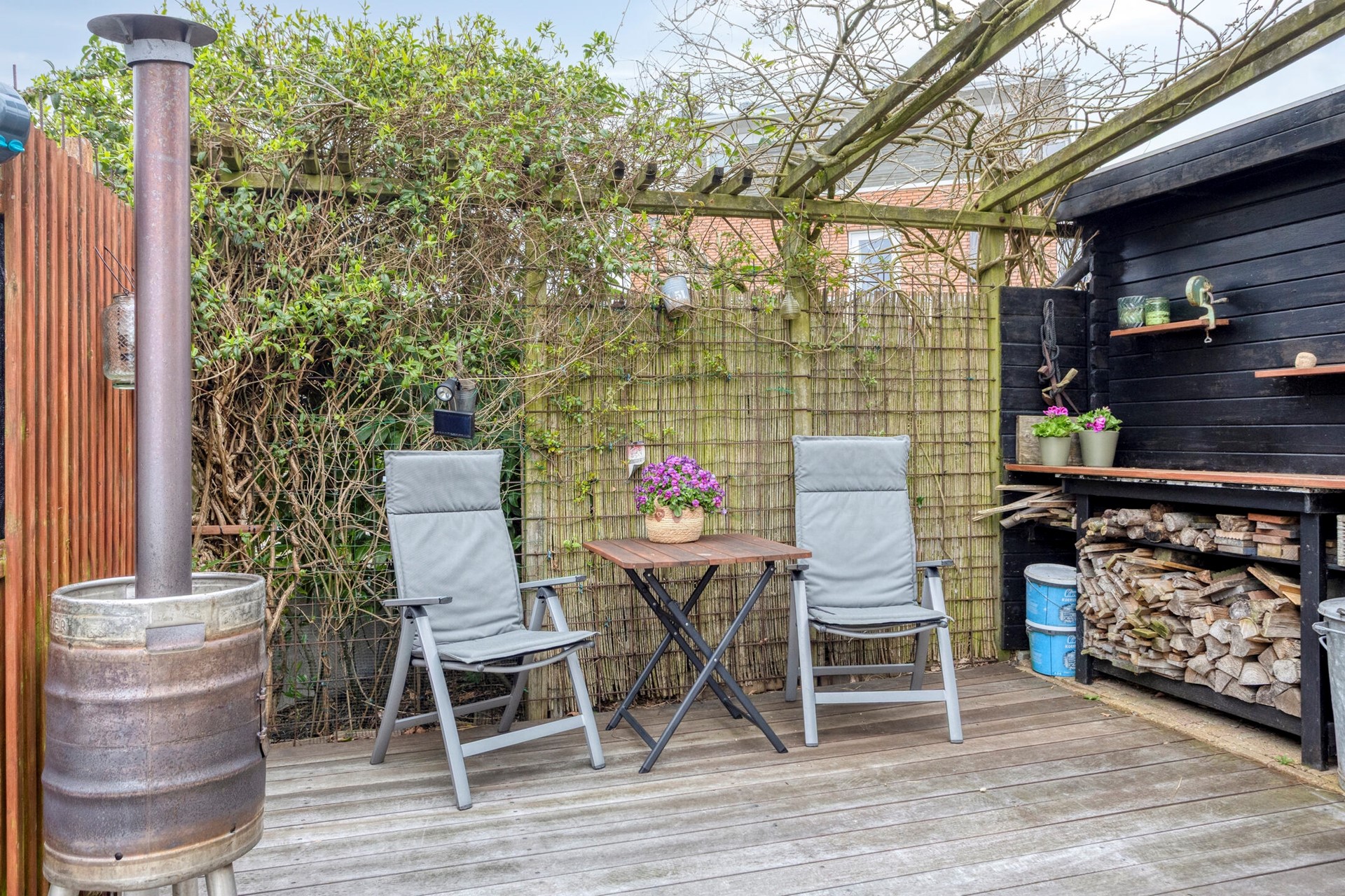 Zonnige tuin, luxe vlonderterras en zwemtrap