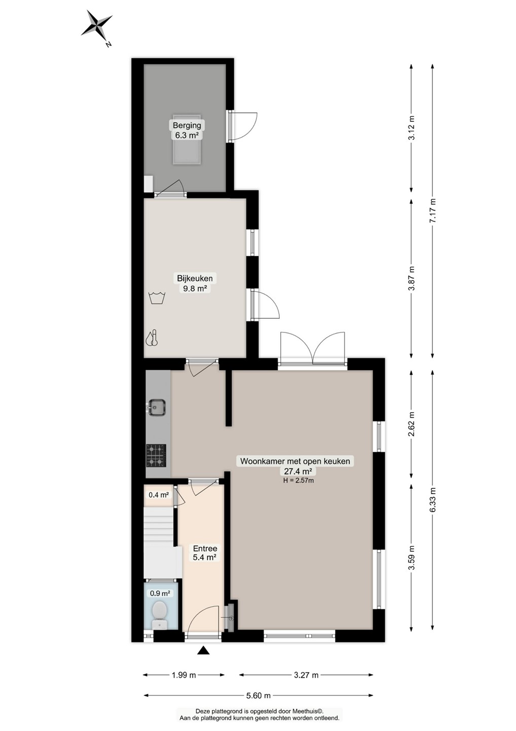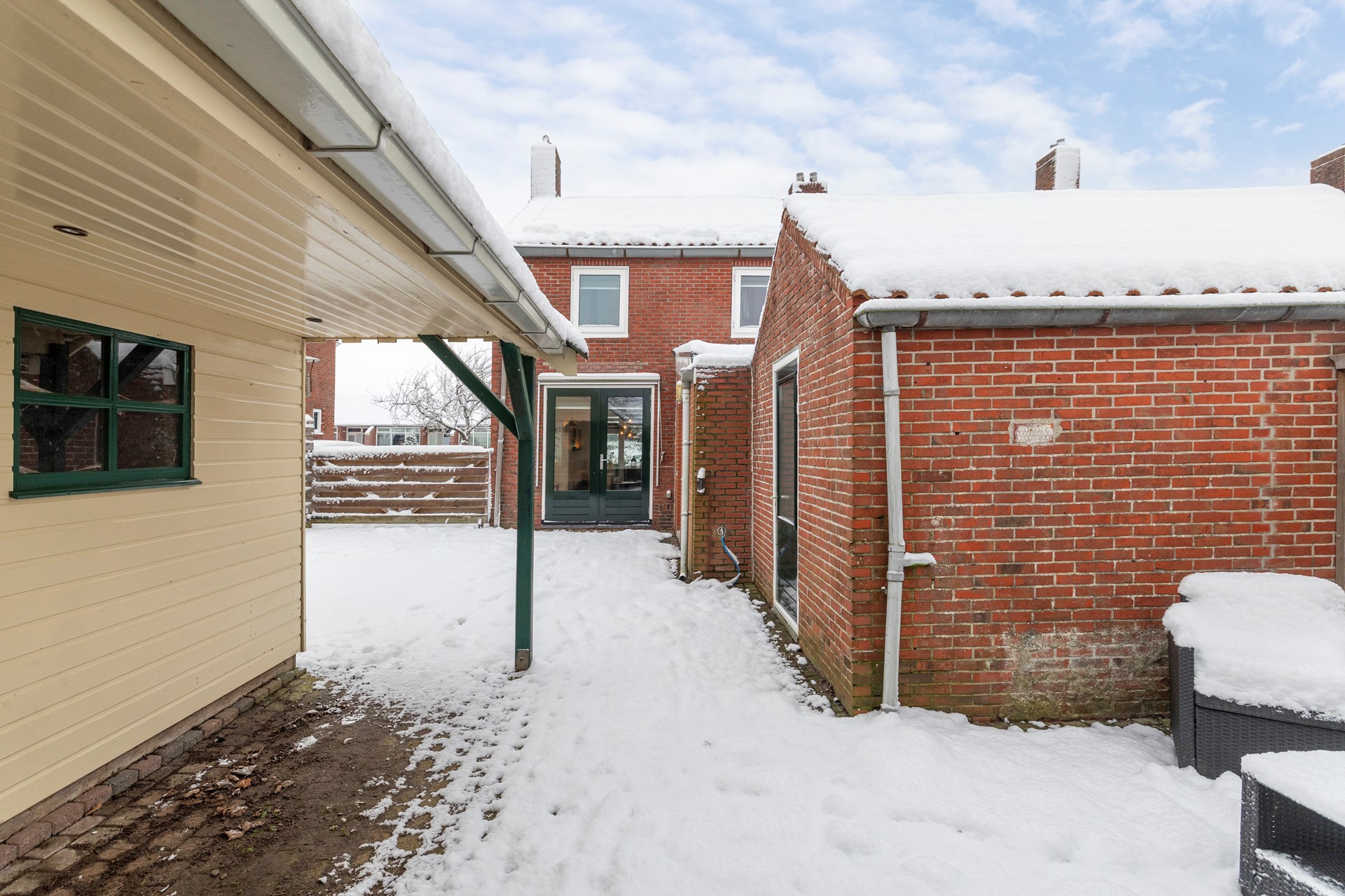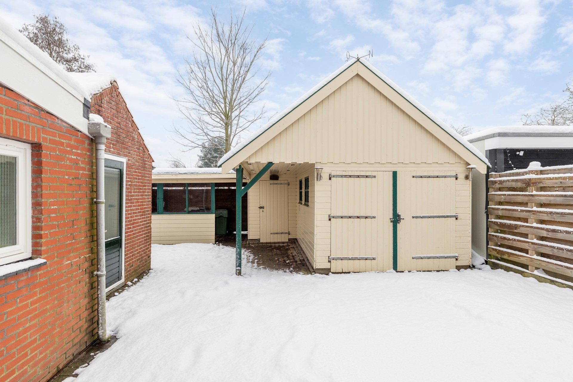 Dankzij de ruime bijkeuken, de diepe en koele kelder, de inbouwkasten op de verdieping en de bergzolder is er volop bergruimte aanwezig. Ook buiten zet dit praktische karakter zich voort. De lange oprit biedt parkeergelegenheid op eigen terrein en de grote, vrijstaande garage is ideaal voor fietsen, gereedschap, hobby’s of de auto.